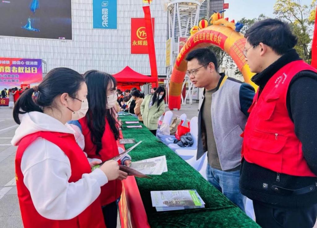 3月14日上午,必赢官网组织大学生志愿者参加池州市2023年国际消费者权益日纪念活动。