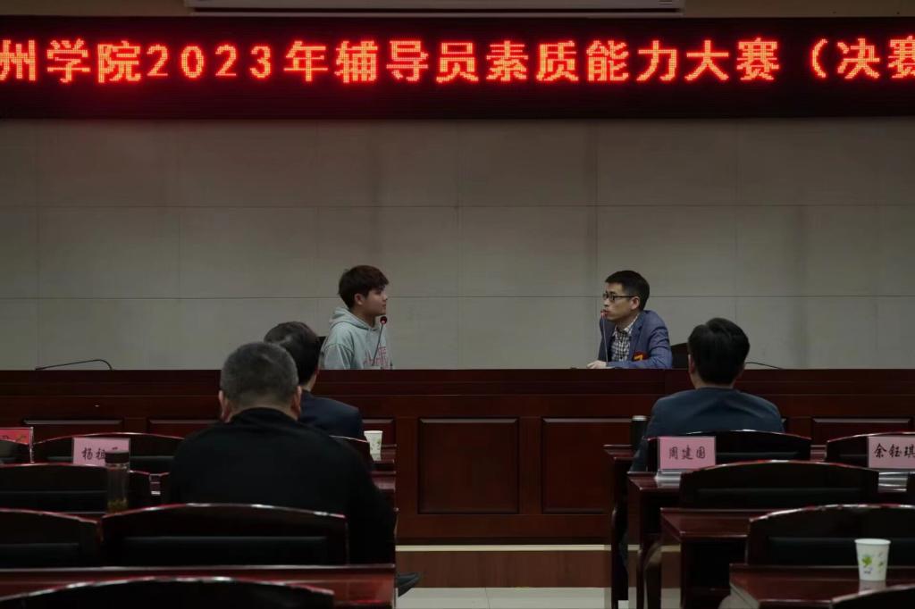 4月14日下午,必赢官网2023年辅导员素质能力大赛(决赛)在行政南二楼会议室成功举行,院党委书记孙晓峰、院党委副书记崔国发到会指导。大赛邀请了安徽师范大学学生处处长邵登辉担任主任评委。