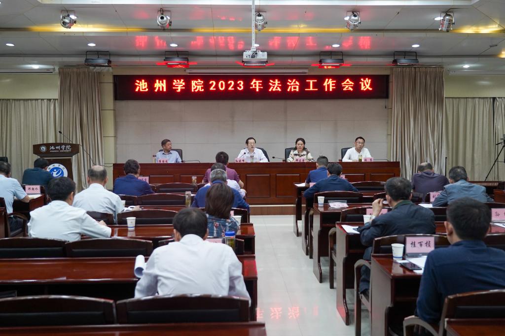 4月18日,学校在行政楼南二楼会议室召开法治工作会议。院党委书记孙晓峰主持会议并讲话,院党委副书记、院长郑兰荣作工作报告。院党委副书记崔国发,院党委委员、副院长张赛出席会议。