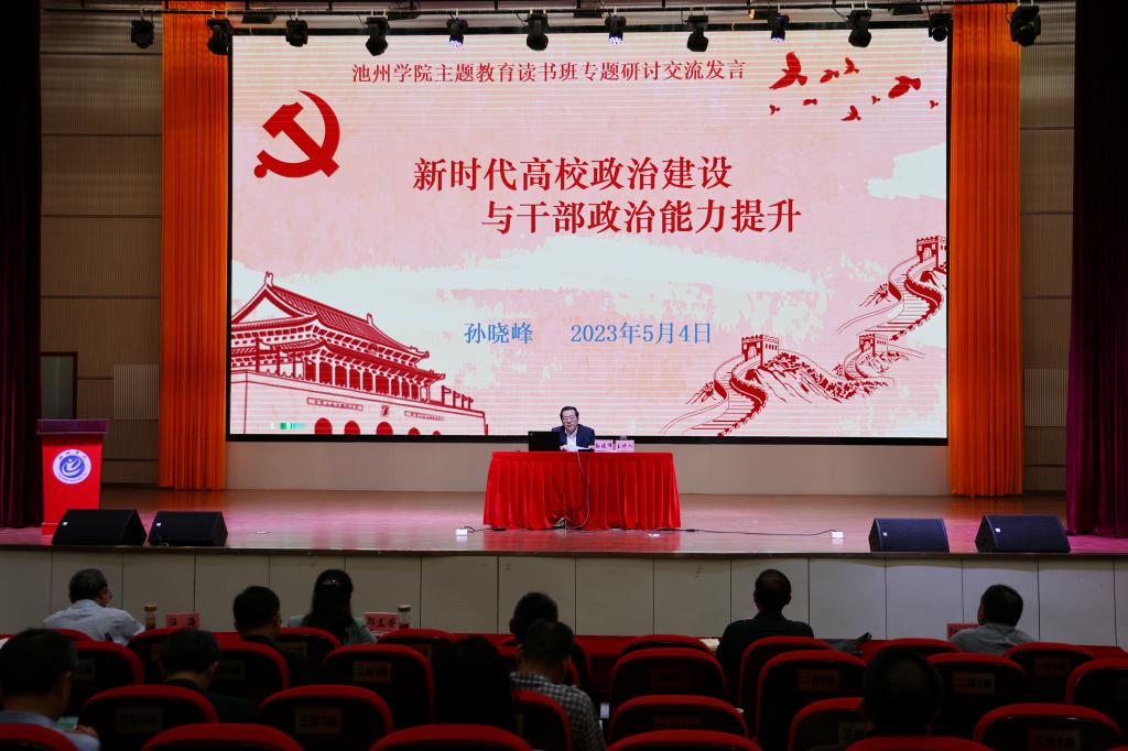 开班式结束后,根据读书班学习方案要求和计划安排。孙晓峰作了题为《新时代高校政治建设与干部政治能力提升》的学习交流发言。报告分别从学习贯彻习近平总书记关于加强党的政治建设和提高干部政治能力的重要论述、加强党对高校工作的全面领导,关乎人才培养质量和党的事业千秋万代、从中央和省委对高校的巡视和审计,看我们干部队伍存在的突出问题和差距、采取有力措施提高干部政治能力,确保学校各项事业高质量发展等四个方面阐述了新时代高校政治建设与干部政治能力提升的切实路径。