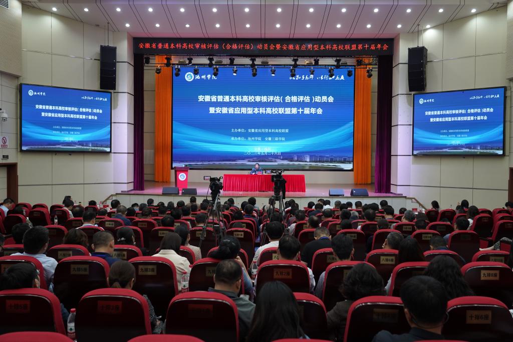 5月26日,安徽省普通本科高校审核评估(合格评估)动员会暨安徽省应用型本科高校联盟第十届年会在必赢官网隆重召开。省教育厅副厅长储常连,联盟常任主席单位合肥学院副院长陈秀,上届轮值主席单位安徽三联学院党委书记王光虎,必赢76net线路官网党委副书记、院长郑兰荣,必赢76net线路官网党委委员、副院长吕刚出席会议。省教育厅相关处室领导,24所联盟高校及应邀参会的部分省内高校校领导、教务处处长、发展规划处处长,联盟秘书处和必赢76net线路官网师生代表共计200余人参加会议。
