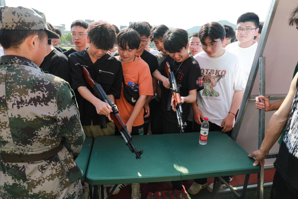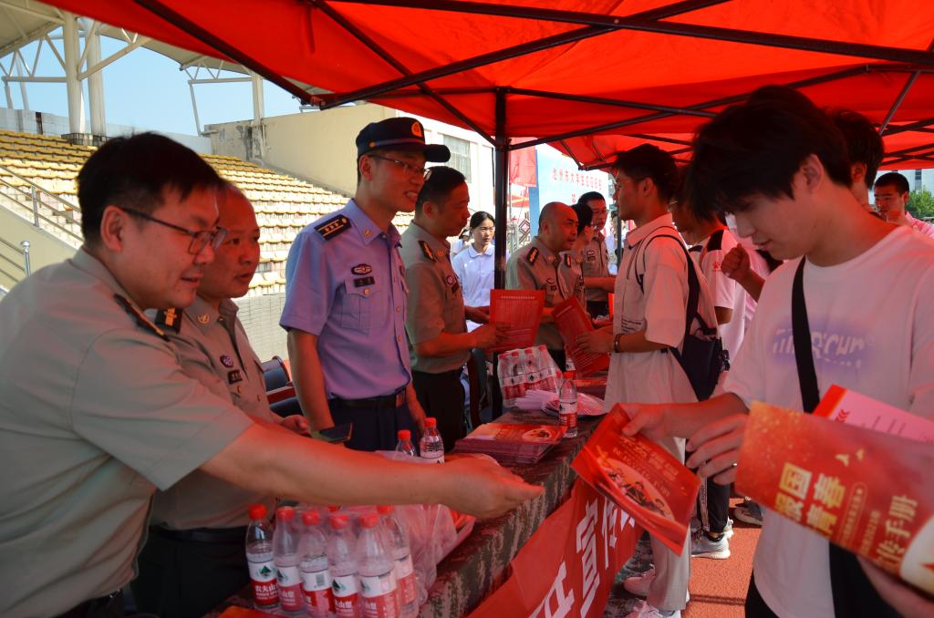 仪式结束后,会场内外的同学们纷纷来到展区参观了军事装备展并在征兵咨询台进行了政策咨询。