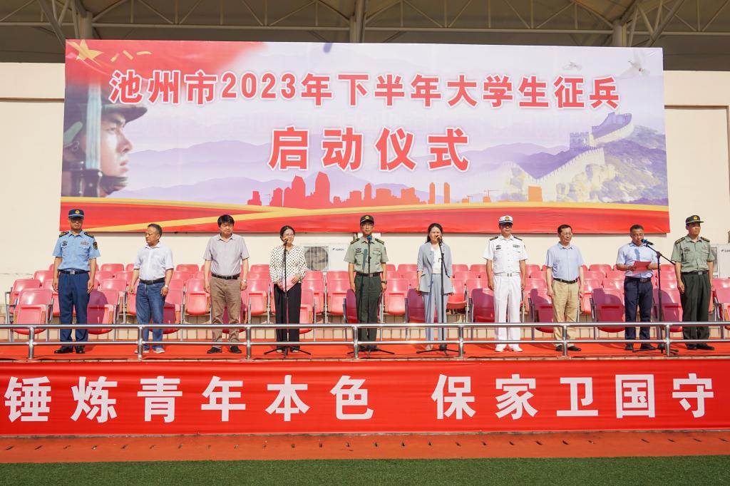 6月9日上午8时,池州市2023年下半年大学生征兵启动仪式在必赢官网举行。党委副书记、院长郑兰荣,池州市政府副市长曹霞,池州军分区大校司令员龚辉,池州职业技术学院院长汪贤才,安徽卫生健康职业学院院长张兵,市征兵领导小组副组长、池州军分区大校副司令员韩立民,党委委员、副院长阳光宁,池州军分区动员处处长渠胜红,贵池区区委常委、人武部上校政治委员冯涛等出席仪式。市征兵领导小组副组长、市政府副秘书长吴昔康主持仪式。