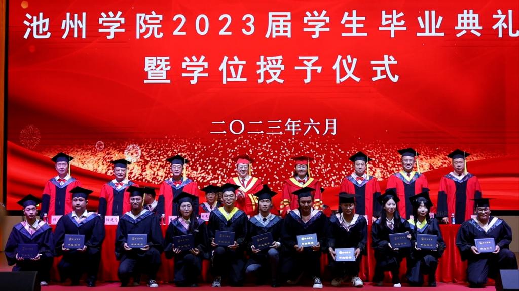 学校党委班子成员为毕业生代表颁发毕业证书。