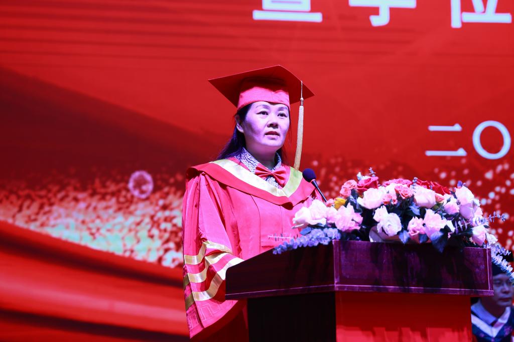郑兰荣代表学校向全体毕业生表示最热烈的祝贺,向一直以来关心、支持、陪伴、见证同学们成长成才的老师和家人们,致以崇高的敬意和衷心的感谢。