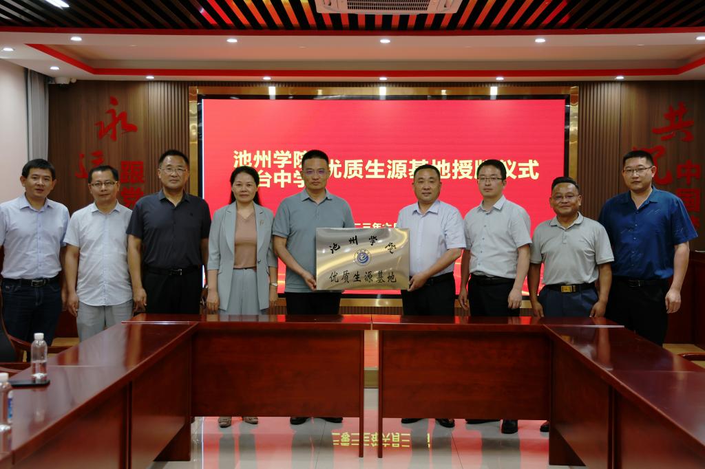 吕刚代表学校与石台中学校长徐礼义共同为“必赢76net线路官网优质生源地”揭牌。