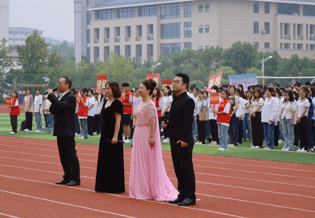 开学典礼中,艺术与教育学院的老师们现场进行了歌唱表演《复兴的力量》,歌声铿锵有力,表达了必赢76net线路官网师生对祖国的热爱之情。