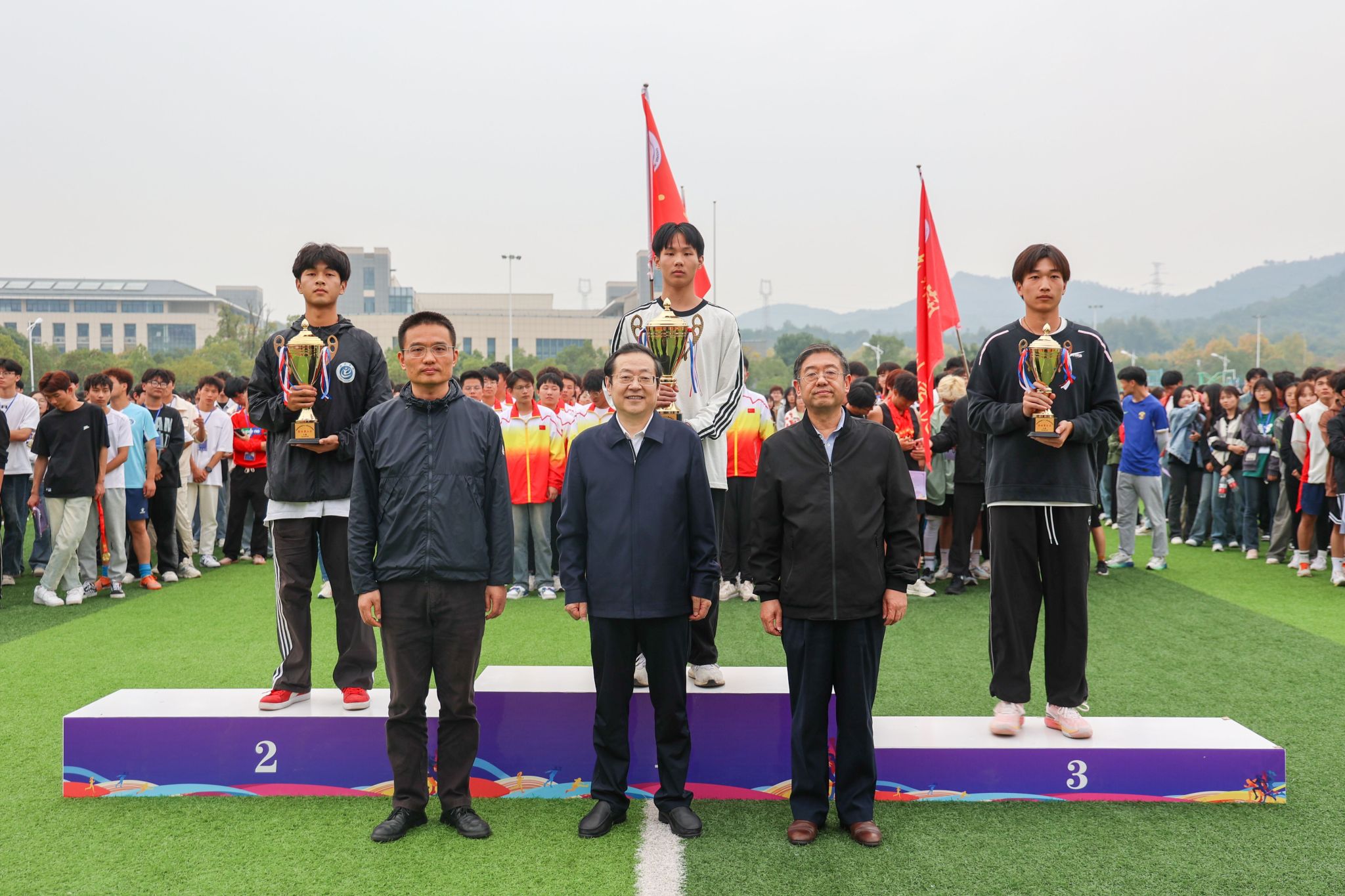 崔国发对为本届运动会付出辛劳做出贡献的各位运动员、裁判员和师生员工表示衷心的感谢,向在运动会中顽强拼搏、勇于挑战获得各项荣誉的先进集体和运动员们表示热烈的祝贺。崔国发指出,本届运动会全院17支代表队共924名运动员报名参加了12项田径项目的比赛,还有教职工参赛的4个项目,经过紧张、激烈而又精彩的角逐,9人次在7个项目中刷新学校运动会比赛记录。这些成绩的取得,是学校高度重视体育教学,始终坚持五育并举,全面落实全民健身,大力开展阳光体育活动的集中体现,是广大师生勇创佳绩、刻苦锻炼、顽强拼搏的硕果。希望同学们将赛场上的那种自信、从容、开放、阳光的精神风貌带到今后的学习和生活中去,化作继续前进的动力,要树立成长成才的志气,激发勇攀高峰的勇气,保持健康、蓬勃向上的朝气,展现攻坚克难的锐气,以良好的身心素质和实际行动,点燃激情、放飞理想、乐观向上、斗志昂扬,在池院事业的大舞台上,在人生更长的赛场上,绽放青春、不负韶华、砥砺前行、不辱使命。