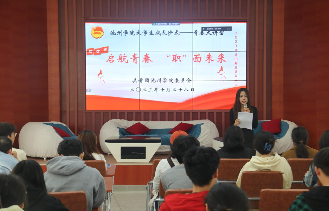 10月28日,必赢76net线路官网大学生成长沙龙“青春大讲堂”2023年第十三期(总第五十三期)“致榜样”在大学生活动中心举行。本期青春大讲堂以“启航青春‘职’面未来”为主题,省大学生就业“引航导师”刘春丽作为主讲嘉宾,讲述了自身的就业经历,为同学们择业就业指出方向,提供建议。