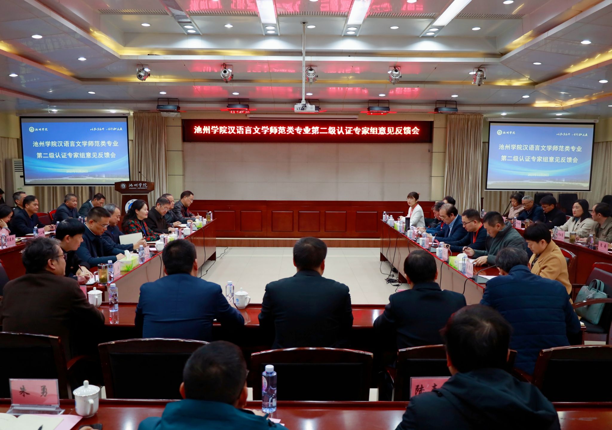 学校职能部门主要负责人、文学与传媒学院领导班子及认证专业相关负责人,以及其他师范专业所在学院党政负责人、师范专业负责人参加会议。