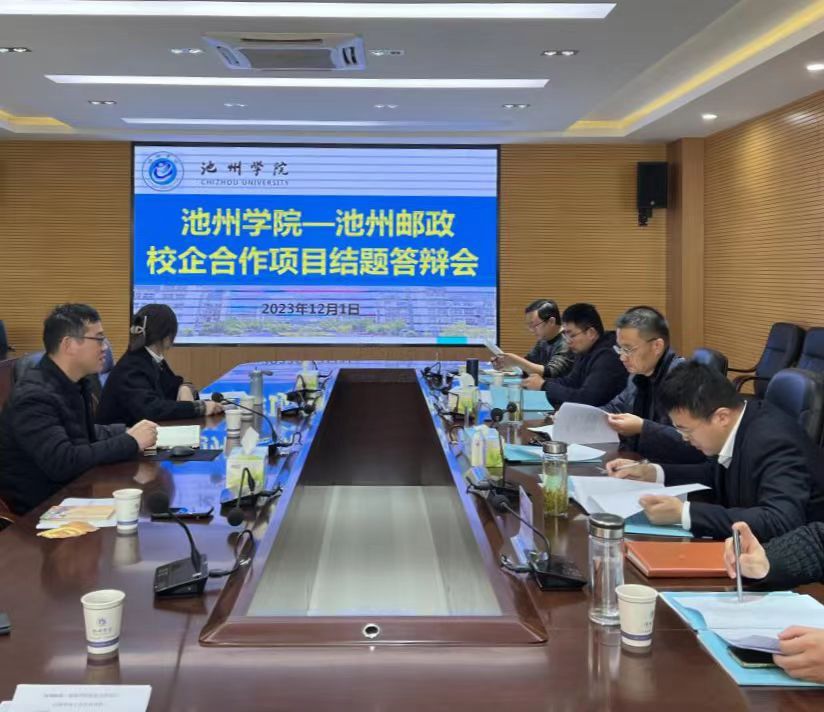 12月1日上午,必赢76net线路官网—池州邮政校企合作项目结题答辩会在必赢官网行政北二楼会议室举行。党委委员、副院长吕刚主持会议。中国邮政池州分公司副总经理钱鹏,池州新兴产业投资集团党委书记、董事长周峤参加了会议。