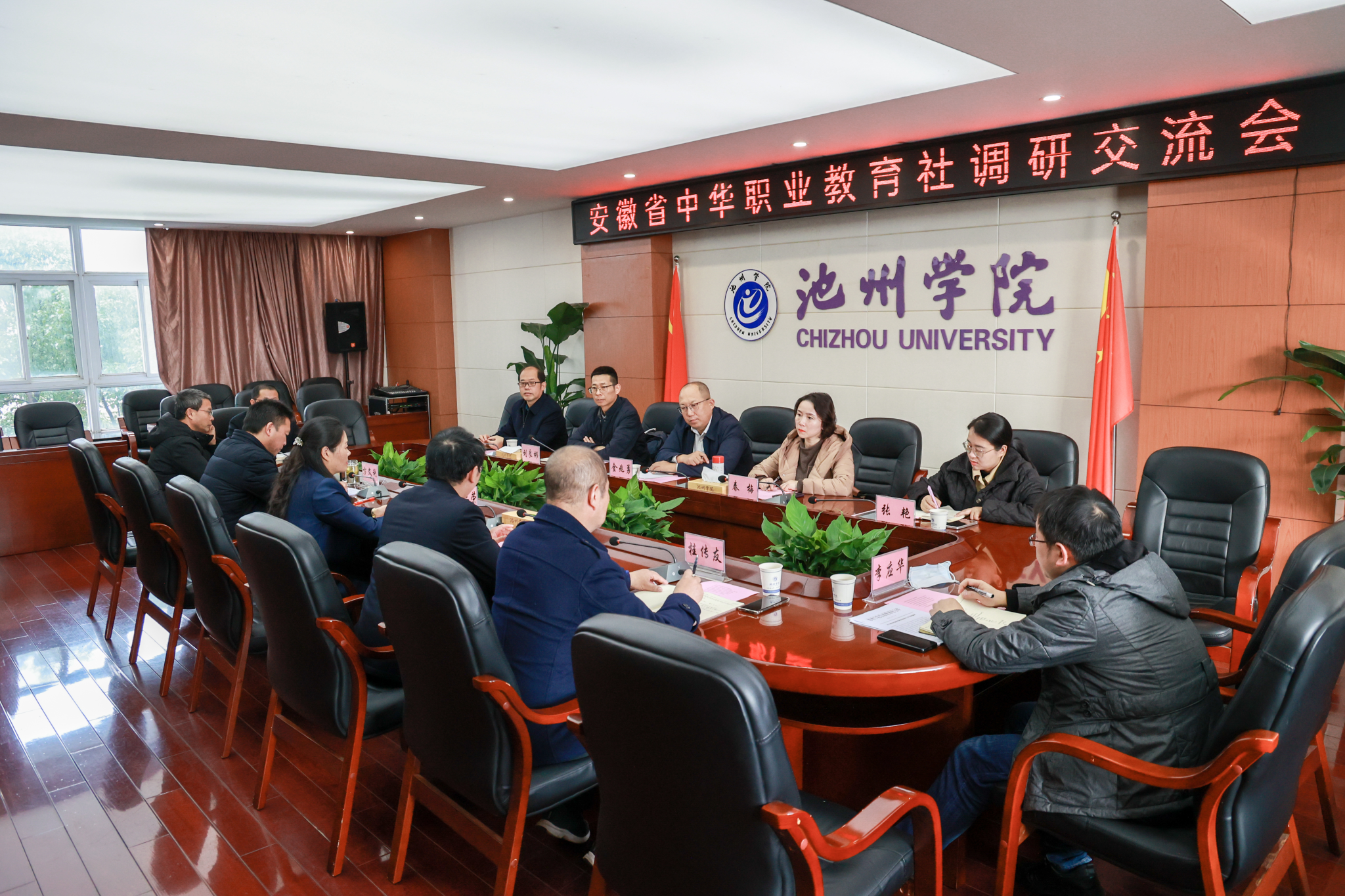 12月14日,安徽省中华职业教育社秘书长金兆勇一行来必赢官网调研。党委副书记、院长郑兰荣主持调研交流会。办公室、教务处、旅游与历史文化学院、机电工程学院主要负责人参加座谈。