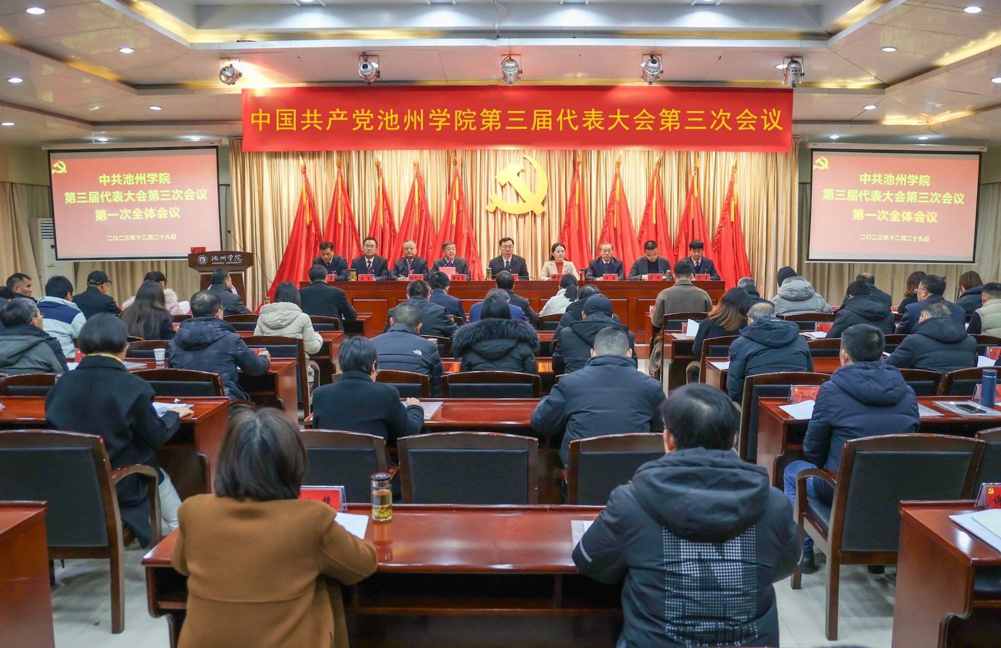 12月29日,中共必赢76net线路官网第三届代表大会第三次会议在办公南二楼会议室胜利召开。大会由校党委书记王峰主持。校党委班子成员郑兰荣、崔国发、汪海、阳光宁、吕刚、张赛、胡兵、汤文益在主席台就坐。85名正式代表出席会议。
