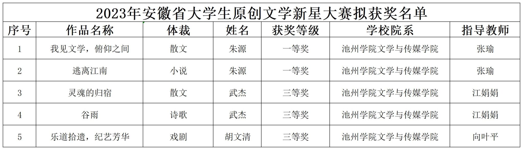 1月11日,安徽省大学生原创文学新星大赛结果揭晓,必赢官网学子荣获一等奖2项、三等奖3项,张瑜老师荣获“优秀指导教师”称号。