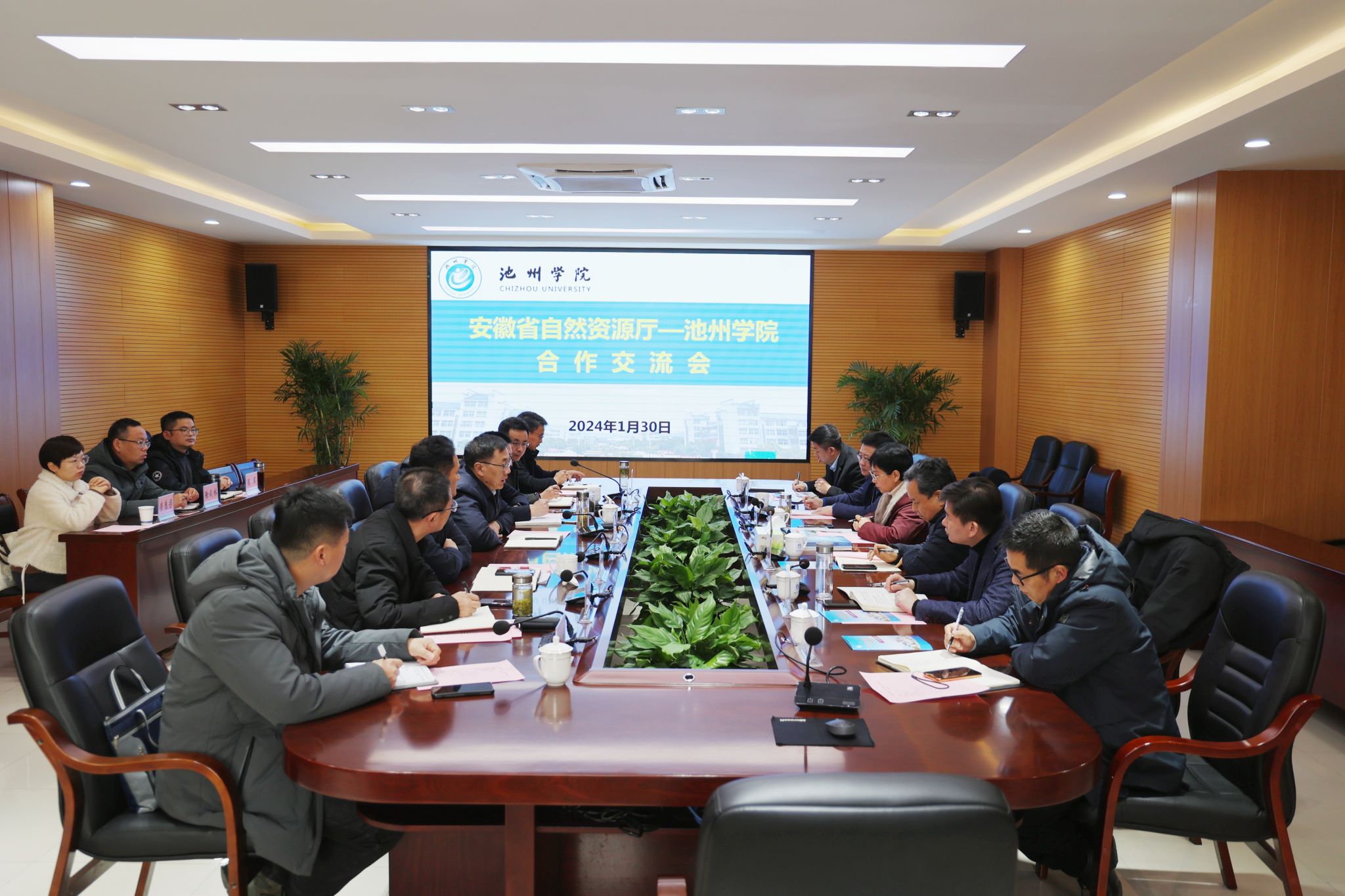 1月30日,安徽省自然资源厅科技外事处处长姚敏一行6人来必赢官网调研交流。党委书记王峰出席并主持座谈会。