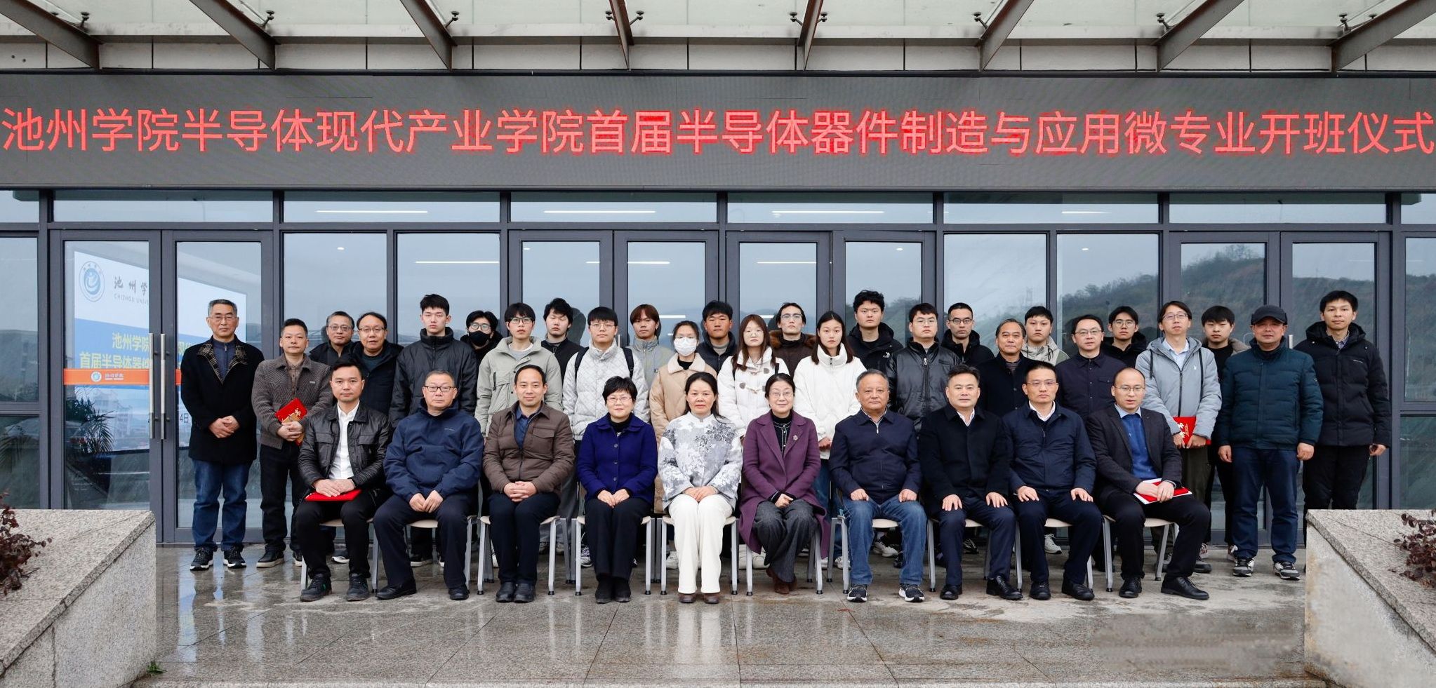 郑兰荣代表学校对池州市政府、市经开区、市教体局、市半导体行业协会,以及半导体企业长期以来的支持表示感谢,对首批微专业学生表示祝贺。她表示,学校围绕池州市半导体主导产业,以电子信息这个省级高峰学科建设为引领,依托“安徽省半导体产业共性技术研究中心”,不断强化应用型研究,为池州市半导体产业高质量发展提供技术支持、增添新的动能。她指出,开设“半导体器件制造与应用”微专业是为了适应新技术、新产业发展需求,培养具有跨学科知识、扎实理论基础、强实践能力和创新精神的应用型人才。一是满足产业发展需求。为池州半导体产业输送更多高素质优秀人才,更好地服务池州产业发展,助力池州教育高质量发展。二是促进学科交叉融合。半导体器件制造与应用涉及电子科学与技术、微电子科学、材料科学、计算机科学等多个学科领域,促进各学科的交叉融合,形成优势互补,提高学校的整体教学和科研实力。三是提升学生实践能力。通过与企业合作,让学生在实际工作中锻炼自己,提高就业竞争力,有利于学生了解行业动态,拓宽视野,为将来的职业生涯打下坚实基础。她希望,同学们珍惜机会,将理论和实践相结合,不断提高自身专业技术水平,培养具备良好的职业素养和团队合作精神,努力成为具备“工匠精神”的高素质应用型人才,为池州半导体产业发展做出贡献。