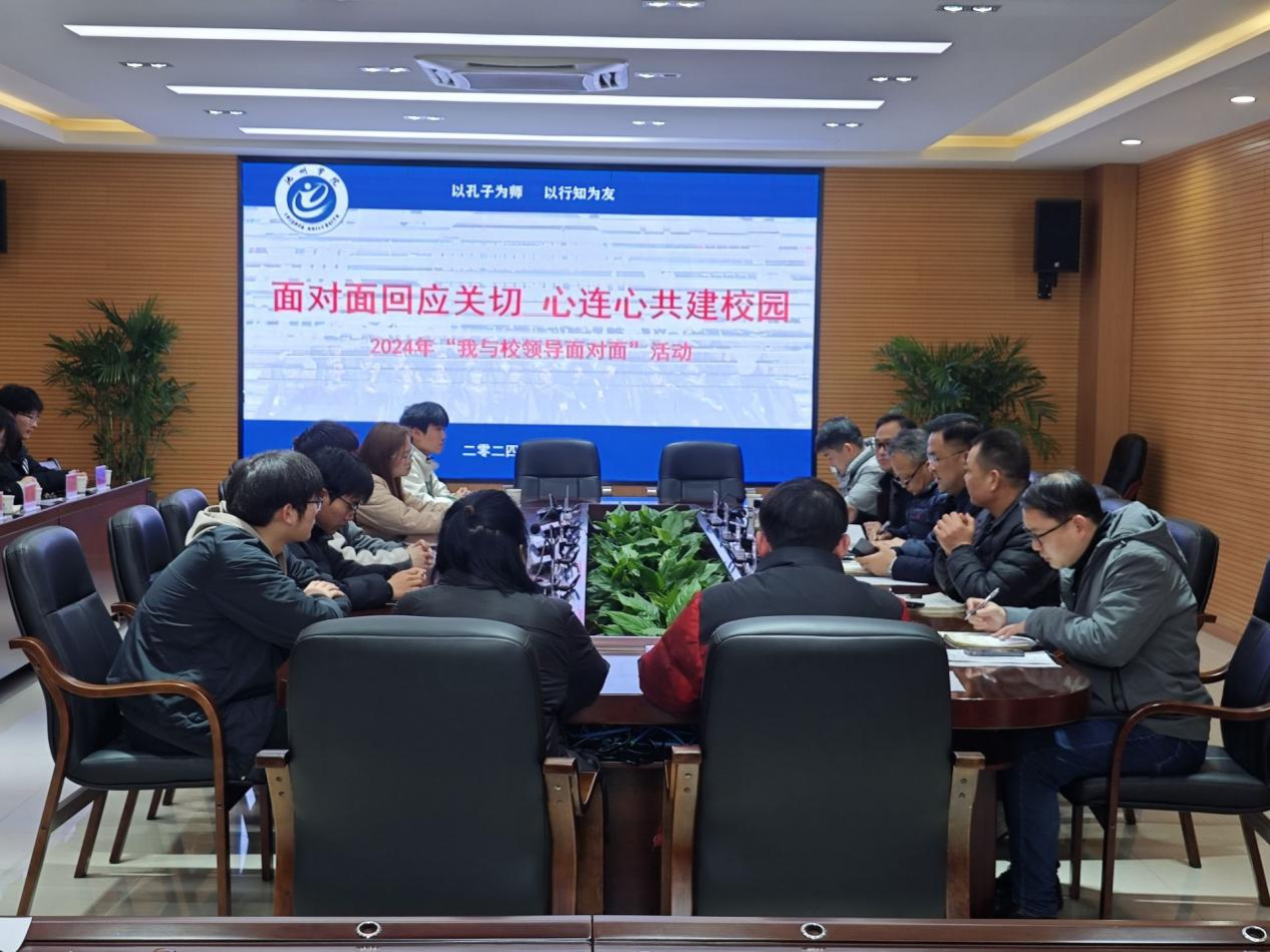 3月7日下午,2024年“我与校领导面对面”活动在行政北二楼会议室举办,这次活动的主题是“面对面回应关切 心连心共建校园”。校党委委员、副院长阳光宁、张赛与16名来自各二级学院的学生代表面对面交流,听取意见建议,回应关切问题。