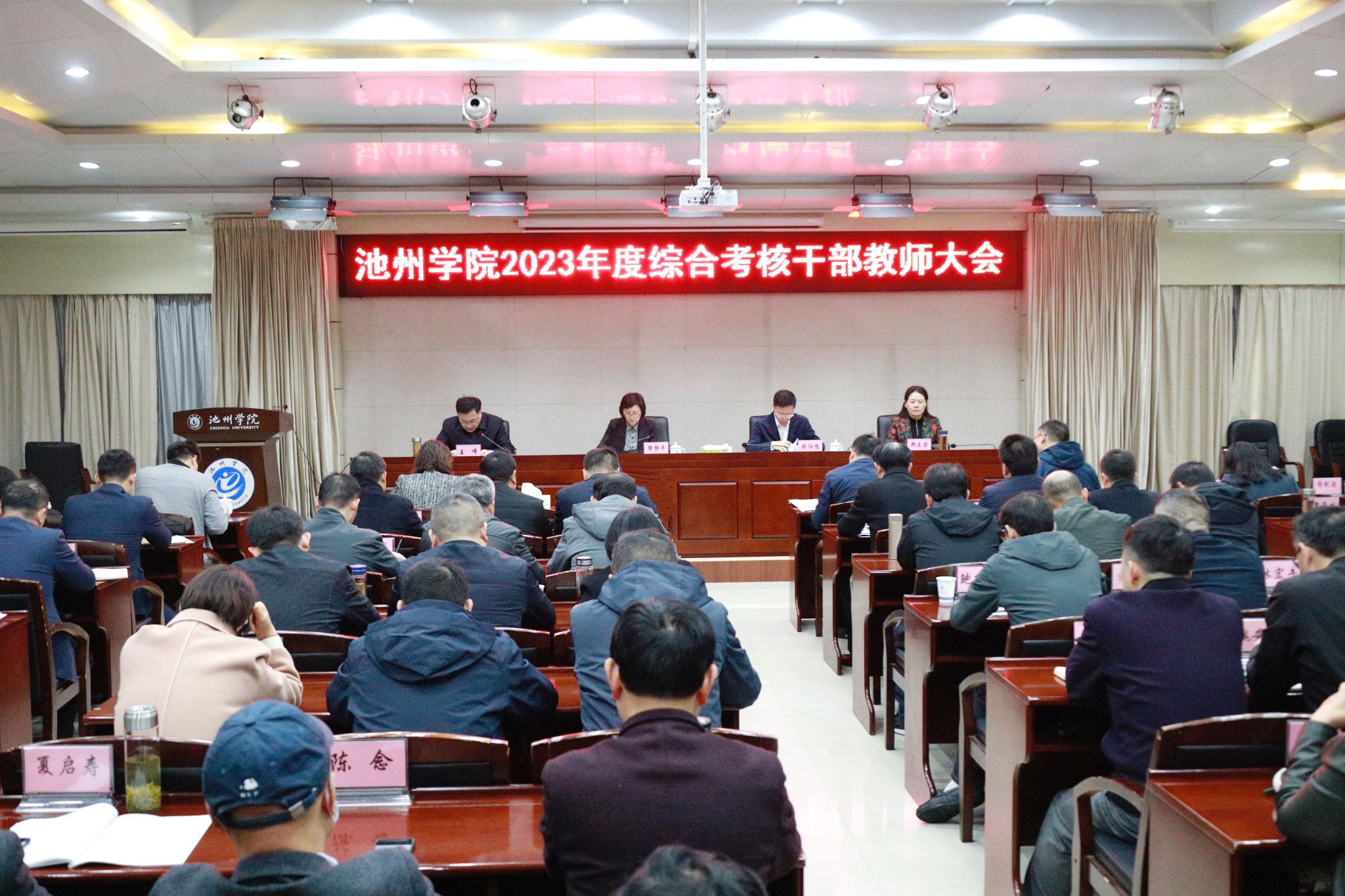 3月25日上午,学校在办公南二楼会议室召开2023年度综合考核干部教师大会。徐静平代表考核组作动员讲话,考核组副组长欧阳鸣及考核组成员出席会议。校领导、各部门负责人、二级学院党政主要负责人、教师代表(省级以上“两代表一委员”、民主党派市级以上主委、学校教代会执委、正高职称人员)以及学生代表参加会议。会议由校党委书记王峰主持。