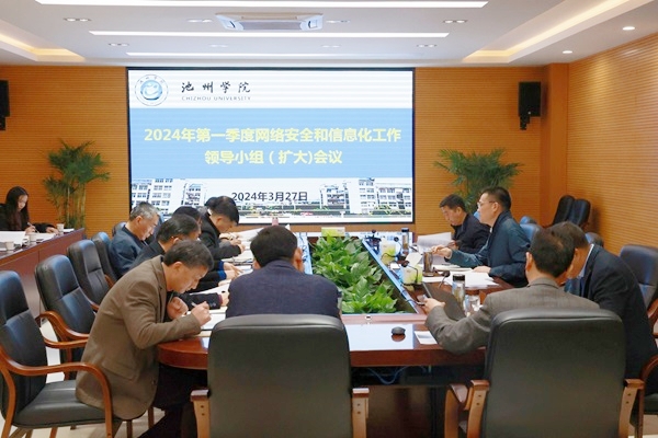 3月27日,学校在办公北二楼会议室召开2024年第一季度网络安全和信息化工作领导小组(扩大)会议。校党委委员、副院长吕刚主持会议。