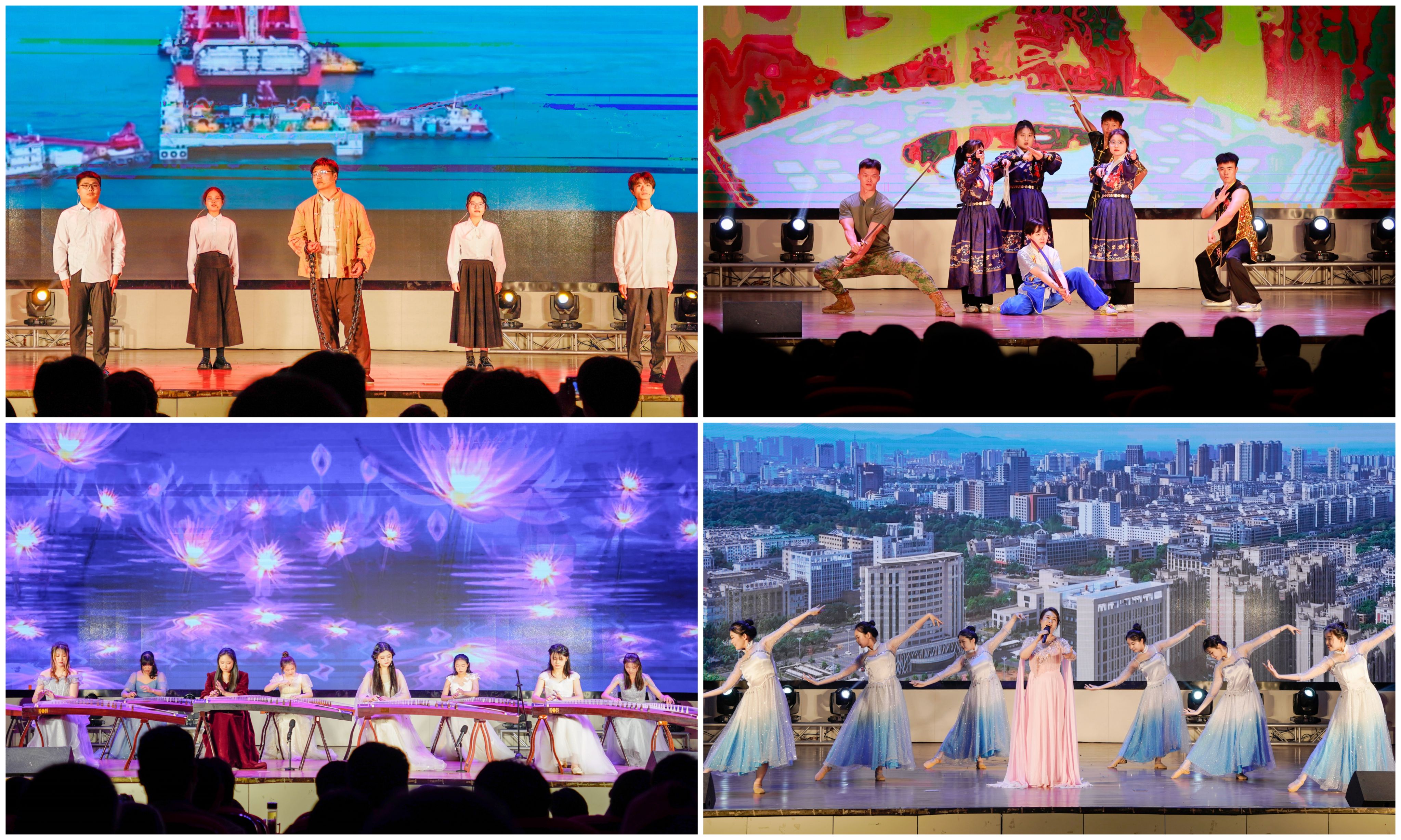 晚会以一场活力四射的舞蹈串烧《奔跑的青春》拉开序幕。说唱《少年终不负韶华》表现了当代青年的爱国之心,朗诵《请铭记,雾重庆》《祖国不会忘记》生动地展现了青年学子的拳拳爱国之心,歌伴舞《繁华依旧》《我们一起远航》传达出对青春、对梦想的执着追求,独舞《遨游·傩》展现了优秀传统傩戏文化的魅力,情景剧《可爱的中国》激励着当代青年勇于承担使命、赓续新时代中国特色社会主义背景下的时代精神,青年教师对唱《春风十万里》洋溢着对美好生活的向往与祝福。晚会在傩戏和罗城民歌相互融合的独唱《在池之州》中圆满落幕。
