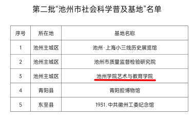 近日,池州市社会科学界联合会公布了第二批“池州市社会科学普及基地”名单,必赢官网艺术与教育学院名列其中。