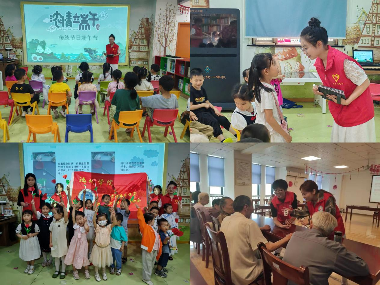 校青年志愿者协会的志愿者们深入南湖社区和市图书馆,为小朋友开展端午节趣味课堂教学活动。志愿者详细讲解端午节起源、传说和习俗,以寓教于乐的方式让小朋友深刻领略其文化内涵与历史意义,并带领孩子们动手制作手工,亲身感受传统工艺的乐趣。体育学院青年志愿者协会分会开展“孝亲敬长展美德,无私奉献正青春”主题活动,走访社区老人,送上慰问品与节日祝福,并针对老人们感兴趣的养生保健、常识问答等话题进行答疑,为老人们带去节日温暖与关怀,展现新时代青年责任与担当。