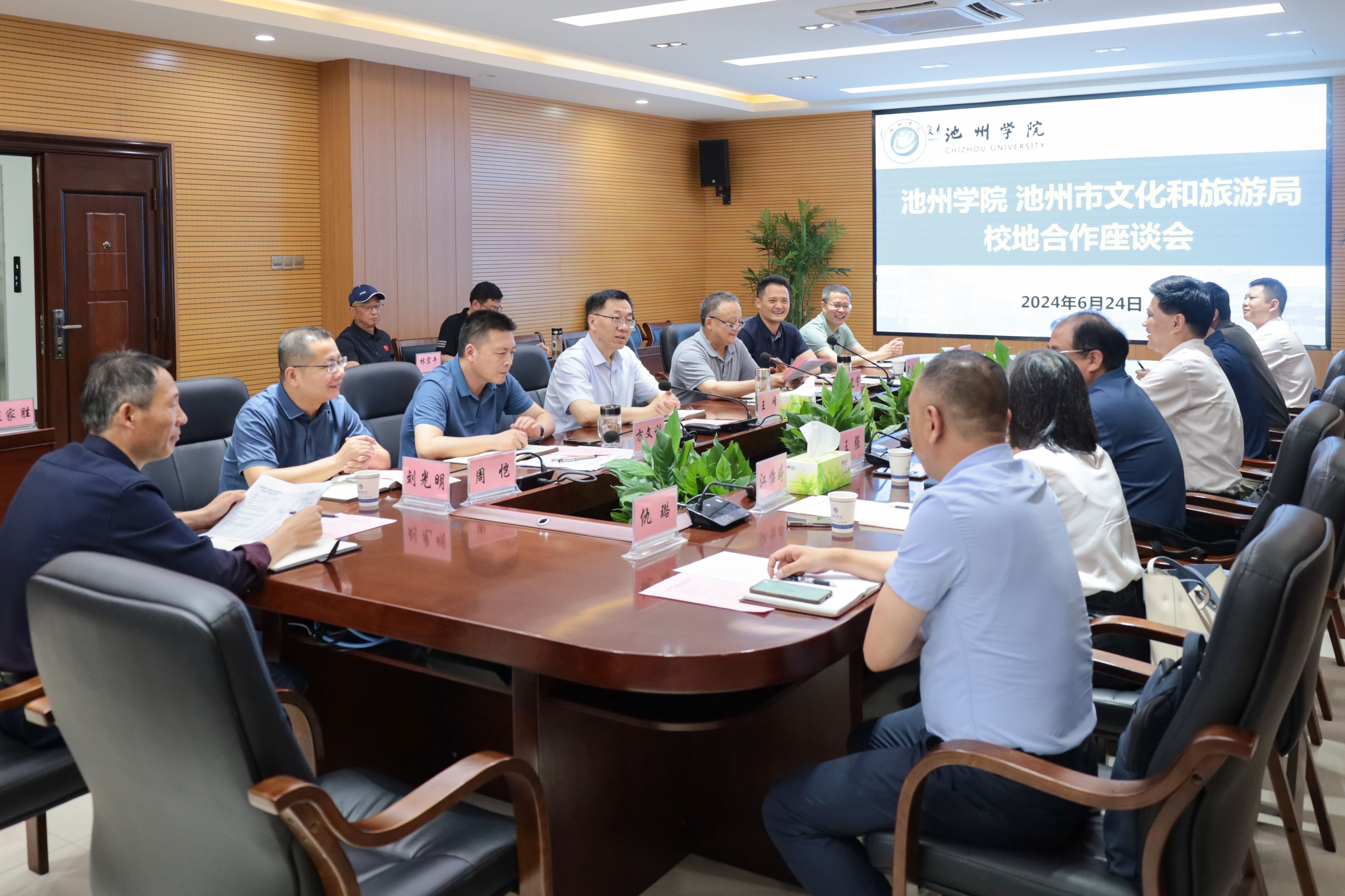 6月24日,必赢官网与池州市文旅局举行校地合作座谈会,双方围绕进一步推动在理论研究、人才培养、艺术创作等领域的深度合作进行了交流。校党委书记王峰,池州市文旅局党组书记、局长陈学锋出席会议并讲话。校党委委员、副院长阳光宁主持座谈会。