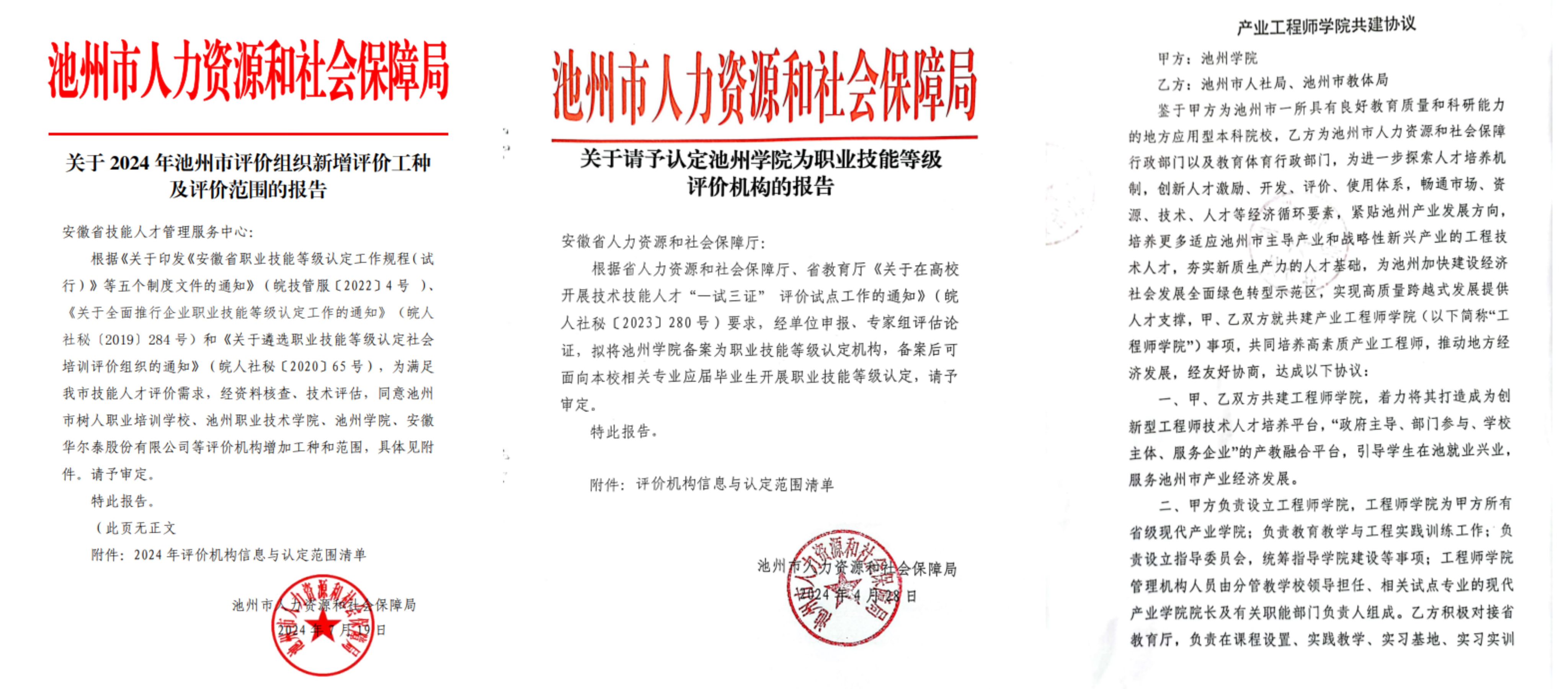 必赢官网深入贯彻习近平总书记关于人才工作的重要指示批示精神,高度重视应用型人才实践能力培养工作,落实安徽省大力实施人才兴皖工程,加快培养安徽省产业发展急需的技术技能人才,学校与池州市人社局、池州市教体局签订“产业工程师学院共建协议”, 以工程师学院为平台,紧密对接地方经济发展方向、行业龙头产业和新兴战略企业,着力提升在新能源汽车、智能制造、数字经济等安徽省和池州市主导产业、新兴产业急需紧缺人才的培养能力,将产业企业需求融入人才培养环节,为池州市产业升级和高质量发展提供高素质应用型人才,助力地方经济发展和人才兴皖工程。
