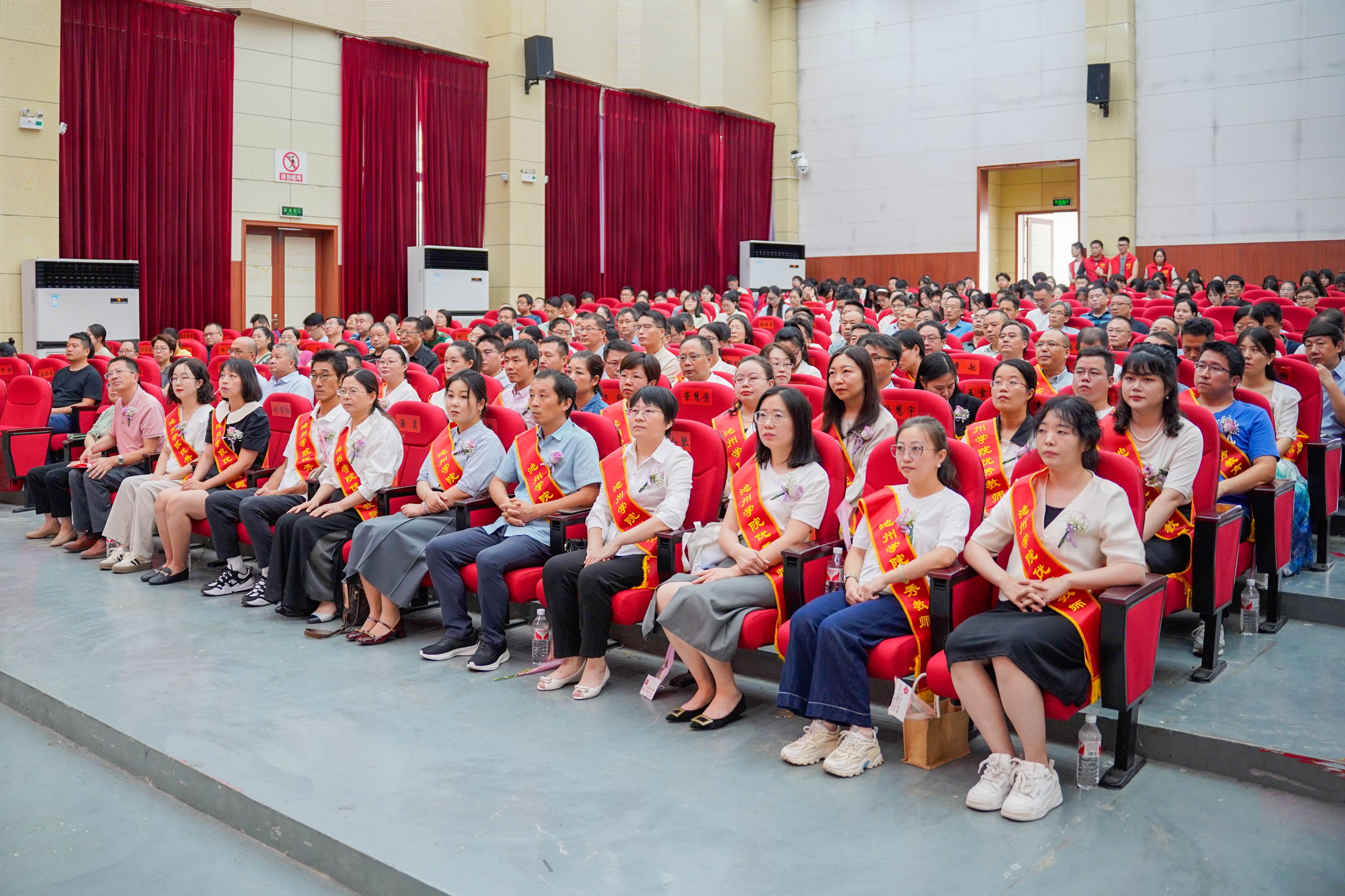 9月10日,学校在博古大礼堂召开庆祝第40个教师节大会,深入学习贯彻党的二十届三中全会精神和习近平总书记关于教师队伍建设的重要指示精神,表彰在教书育人各方面工作中取得突出成绩的先进集体和优秀个人,大力弘扬教育家精神,建设特色鲜明的地方应用型高水平大学。校党委书记王峰出席会议并讲话,校党委副书记、院长王先柱,校党委副书记崔国发,校党委委员、副院长阳光宁、吕刚、张赛,校党委委员、组织部部长胡兵,校党委委员、宣传部部长汤文益在主席台就坐。大会由崔国发主持。