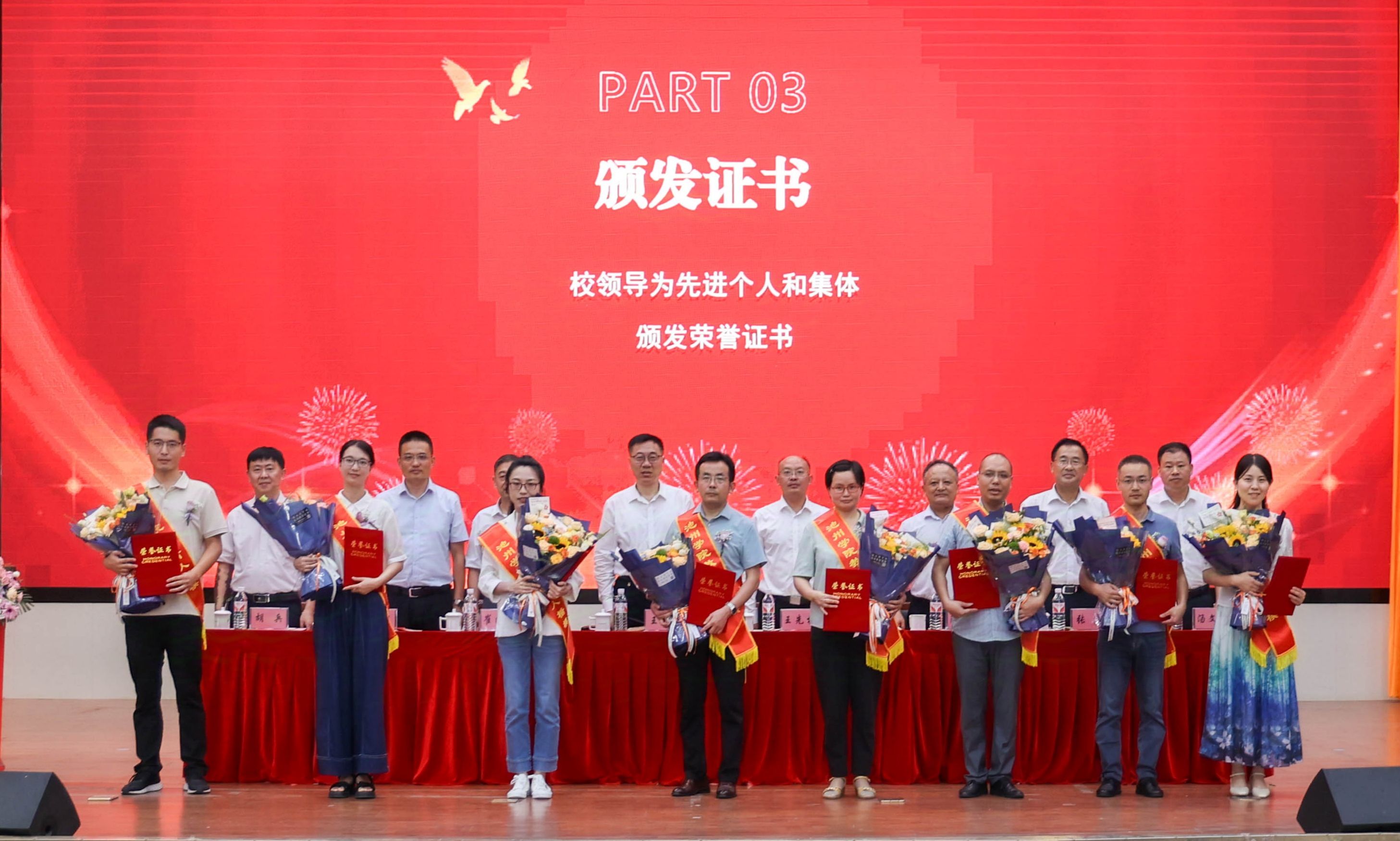 校领导为受表彰的先进集体和先进个人颁发了荣誉证书。
