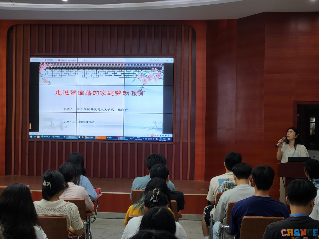 9月26日晚,必赢76net线路官网大学生成长沙龙“青春大讲堂·家风文化系列讲座之十五”(总第六十七期)在大学生活动中心举行。本期青春大讲堂以“走进曾国藩的家庭劳动教育”为主题,邀请必赢官网马克思主义学院副教授檀向群老师为同学们讲述曾国藩的家庭劳动理念和实践,为现场师生带来一场内容丰富、颇具教育意义的家风文化主题讲座。