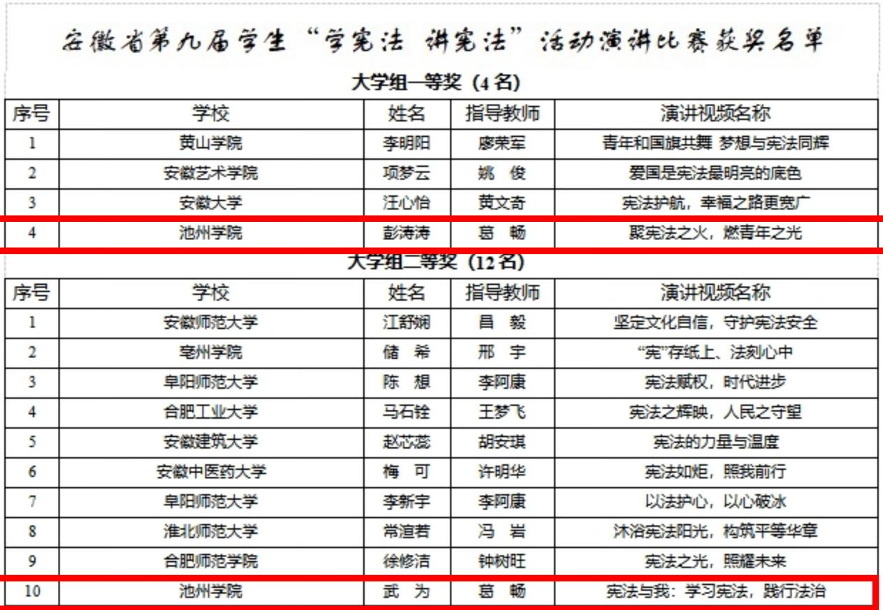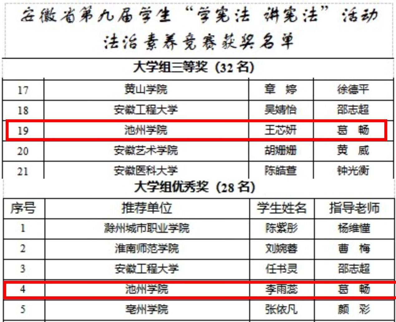 来自商学院22级市场营销专业学生武为荣获大学组演讲比赛二等奖,法学院23知识产权专业(专升本)学生王芯妍、22级知识产权专业学生李雨蕊在法治素养竞赛中分别荣获大学组的三等奖和优秀奖。必赢官网4名参赛选手全部获奖。