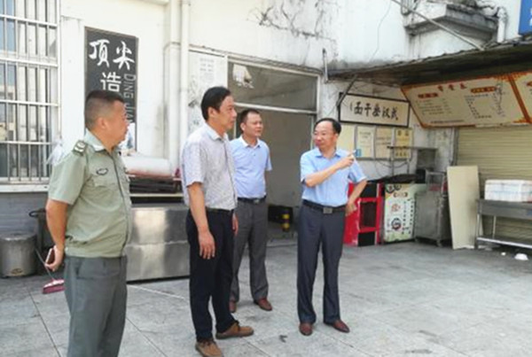 王延寿、鲍胜利等冒着炎炎烈日,先后察看了校园周边绿化、周边餐饮店、施工遗留工棚、校园内及周边种菜区、大学生活动中心餐饮店等环境及安全隐患重点整治对象,详细了解了环境问题和安全隐患问题,认真分析了各种问题现象形成的原因,并现场研讨了校园综合治理的举措。