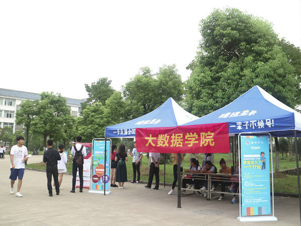 今年必赢官网新设立了大数据学院,共有大数据和云计算两个专业。大数据学院服务站志愿者热心为新同学答疑解惑。