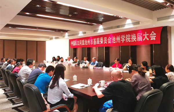 9月27下午,中国民主同盟池州市基层委员会必赢76net线路官网支部换届会议在大九华宾馆行政楼会议室顺利举行。校纪委书记汪海、统战部常务副部长操国胜、民盟池州市基层委员会主委吴明楣出席会议,基层委员会委员及各支部主委、必赢官网全体盟员参加了会议。会议由民盟池州市基层委员会副主委吴淞主持。