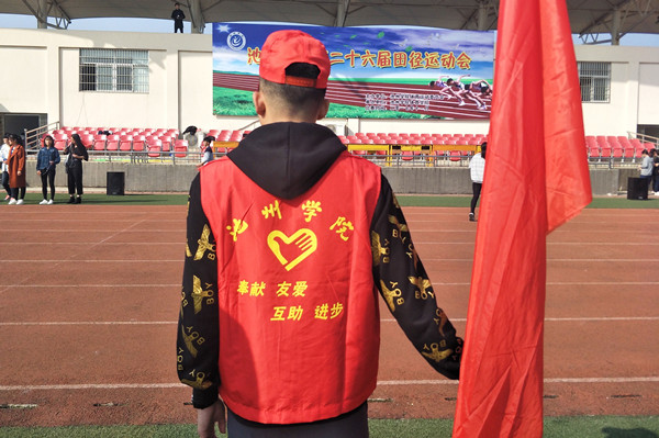 绿草如茵的田径场上,随处可见学生志愿者的身影。为期三天的比赛中,每位志愿者都尽职尽责地为运动员提供服务,任劳任怨,无私奉献。问到他们工作时的感受,文学与传媒学院17广告学2班郝雨欣说的简单而朴实:“希望每位运动员能发挥出最佳的水平,我们的付出都是值得的。”