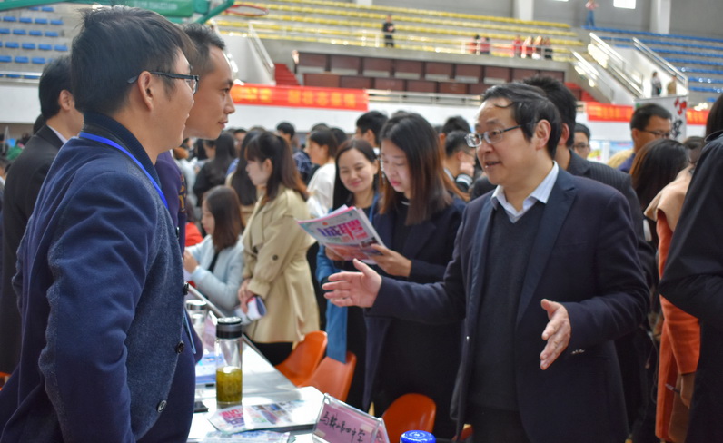 11月11日,必赢76net线路官网2018届毕业生冬季校园招聘会在校体育馆隆重举行。校党委副书记孙晓峰,副校长汪贤才以及市人力资源与社会保障局相关负责人临现场指导。