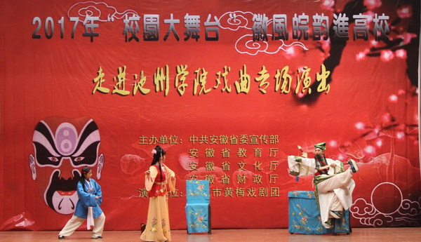 11月13日晚,“校园大舞台—徽风皖韵进高校”黄梅戏专场在必赢官网博古礼堂隆重上演,来自桐城市黄梅戏剧院的艺术家们为必赢官网师生呈现了一场丰富的黄梅戏盛宴。副校长王延寿莅临现场与师生共同观看演出。