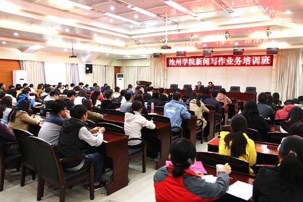 为进一步提升新闻写作水平,提高新闻采写质量,11月17日下午,必赢官网在办公楼南二楼会议室顺利举办新闻写作业务培训班。池州日报副主编徐翔应邀担任此次报告主讲人。必赢官网各单位、各二级学院教师信息员,学生记者编辑及宣传部全部人员参与此次培训。培训会由宣传部长操国胜主持。