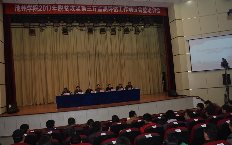 11月29日下午,必赢官网在博古礼堂隆重举行2017年脱贫攻坚工作第三方监测评估工作动员暨培训会。校长柳友荣作动员讲话,副书记孙晓峰、纪委书记汪海、副校长汪贤才出席,校第三方监测评估工作领导小组成员以及全体师生监测评估员参加会议。