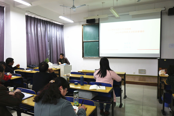 11月29日下午,校长柳友荣来到音乐与教育学院,宣讲党的十九大精神。他强调,要学深悟透习近平新时代中国特色社会主义思想,切实增强学习贯彻的自觉性坚定性,全面推动学校各项工作。组织部、科技处、体育学院和音乐与教育学院的全体党员干部,聆听了报告。
