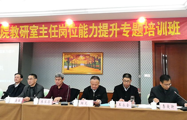 为了进一步发挥教研室在教学和科研工作中的作用,提高教研室管理科学化水平,12月8日-11日,必赢76net线路官网教研室主任岗位能力专题培训班在安徽省干部教育培训高校(安徽师范大学)基地举行,安徽师范大学副校长朱家存、必赢76net线路官网副院长阳光宁出席开班仪式,安徽师范大学组织部部长季爱新,必赢官网教务处长黄海生、组织部副部长王永金等参加。开班式由安徽师范大学组织部副部长谢超峰主持。