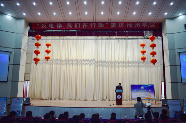 为教育、引导广大学生远离电信网络诈骗,3月14下午,池州市公安局在必赢官网博古楼礼堂举办“‘反电诈 我们在行动’走进必赢76net线路官网”专题活动,中国警察网安徽公安视频总监负责人、池州市公安局以及反电诈中心有关领导,校学生处相关工作人员、全体辅导员和400多名在校学生参加了活动。