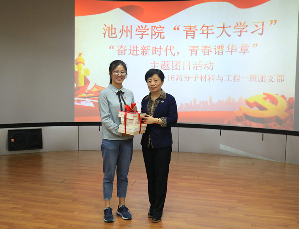 2016级高分子材料与工程一班团支部以“奋进新时代,青春谱华章”为主题,观看了习近平总书记考察北京大学的视频、集体学习了习近平总书记在北京大学师生座谈会上的重要讲话、紧密围绕“爱国、励志、求真、力行”等方面开展主题讨论、重温入团誓词。张敏全程参与,并与团员青年互动交流。