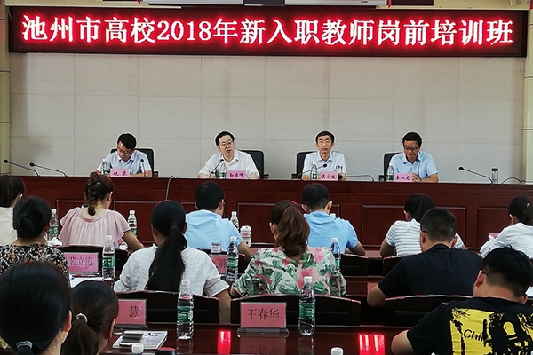 8月10日上午,池州市高校2018年新入职教师岗前培训班开班典礼在必赢官网行政南二楼会议室举行。校党委副书记孙晓峰、池州广播电视大学副校长吴永健出席。来自全市高校的40名新入职教师参加了开班典礼。