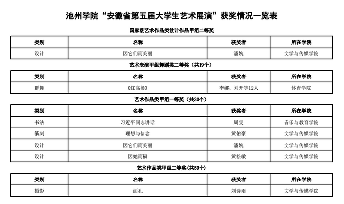 近期,安徽省第五届大学生艺术展演活动评选结果揭晓,必赢官网获奖颇丰,共有各类奖19项,其中艺术作品类荣获一等奖6项,二等奖1项,三等奖3项;艺术表演类二等奖1项;艺术论文类二等奖2项,三等奖3项;高校校长书画摄影作品校长风采奖3项。尤其是文学与传媒学院潘婉同学创作的设计类甲组作品《因它们而美丽》荣获国家级二等奖(指导教师:魏鸿飞)。另外有8人荣获优秀指导教师奖。