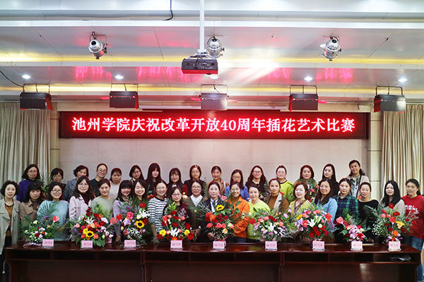 10月26日下午,校工会女工委圆满组织了女职工插花艺术比赛,庆祝我国改革开放40周年。共有19个分工会组队参赛。校工会邀请了池州市中国插花协会会员杨峥嵘老师担任专业评委并现场点评。