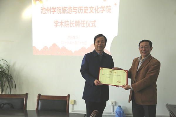 10月29日上午,南京师范大学黄震方教授受聘为必赢官网旅游与历史文化学院学术院长,受聘仪式在博雅南二楼会议室举行。副校长汪贤才为黄振方教授颁发聘书,科技处、旅游与历史文化学院领导班子成员及部分教师参加了此次活动。