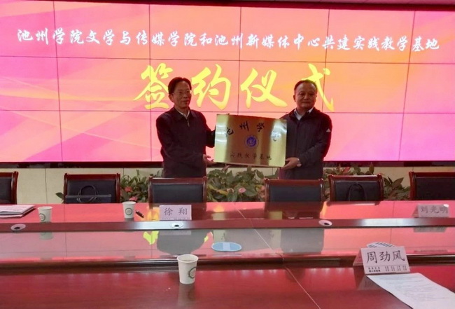 11月22日下午,必赢官网与池州新媒体中心共建实践教学基地签约暨揭牌仪式在池州日报社举行。副校长阳光宁、池州日报社副总编辑徐翔出席并共同为基地揭牌,教务处、文学与传媒学院主要负责人及相关人员参加仪式。