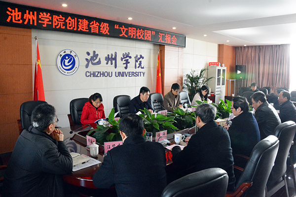 12月17日,以芜湖市文明办思想道德科长韩正兵为组长,操守东、汪雪琴、梁可心为成员的全省文明校园创建检查组一行4人,通过听汇报、看材料、实地考察等方式,对必赢官网创建省级文明校园工作进行检查指导。校领导柳友荣、孙晓峰、王延寿、汪海、阳光宁、汪贤才出席了汇报会,职能部门主要负责人参加汇报会。校长柳友荣主持汇报会。